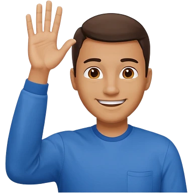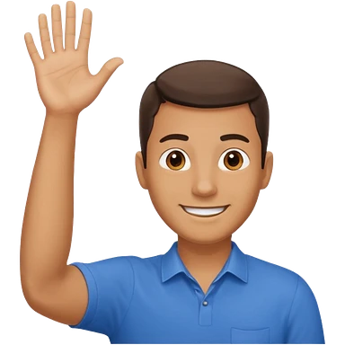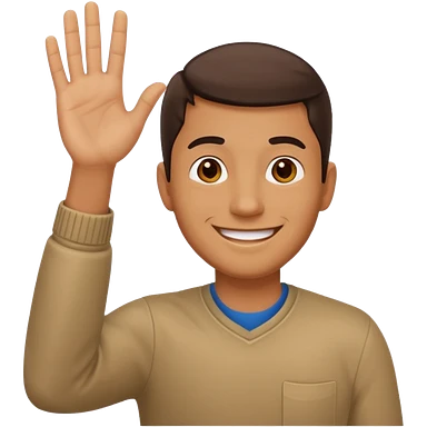 This image is a Memoji-style digital avatar sticker featuring a smiling man with a beard, dark hair, and a raised hand in a waving gesture. Detailed Description for Recreation: Face & Expression: The avatar has a round face with a well-groomed black beard and mustache. Eyebrows are slightly curved and match the black hair. The eyes are black with a friendly expression, and the mouth is open in a warm smile showing white teeth. Hair: The hair is short, black, and slightly wavy with a styled quiff. Hand Gesture: The right hand is raised in a waving gesture, with fingers slightly spread apart. Clothing: The avatar is wearing a black, long-sleeved collared shirt. Background & Style: The background is transparent (common for stickers). The art style is 3D cartoon-like, similar to Apple’s Memoji avatars. emoji