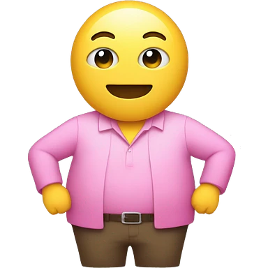 yellow man with small head and big circular belly wearing pink shirt. Very very shrt arms and legs emoji
