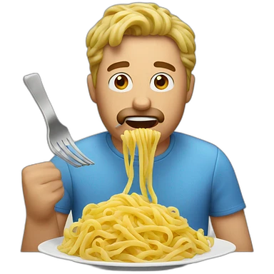 A light-skinned, nerdy man with dark hair and a beard eating pasta With a white shirt emoji