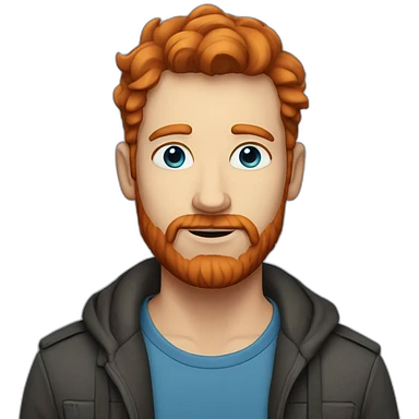 Man with red hair and beard,blue eyes, full face from side, tired and small amount of agressivenes in eyes emoji | AI Emoji Generator