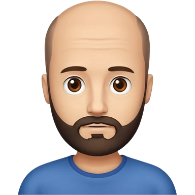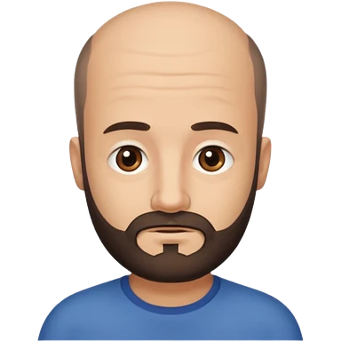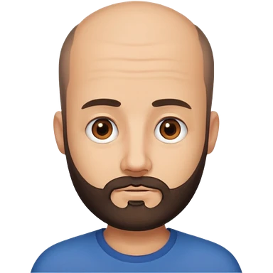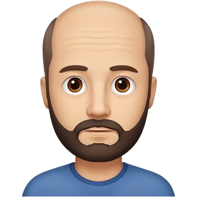 semi balding man with short hair and has a beard. dark brown eyes and brown beard. no wrinkles on face, he still looks young emoji