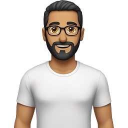 man with short brown hair shaved on the sides, low beard, eyebrow piercing, with a silver chain around his neck and wearing a black t-shirtemoji