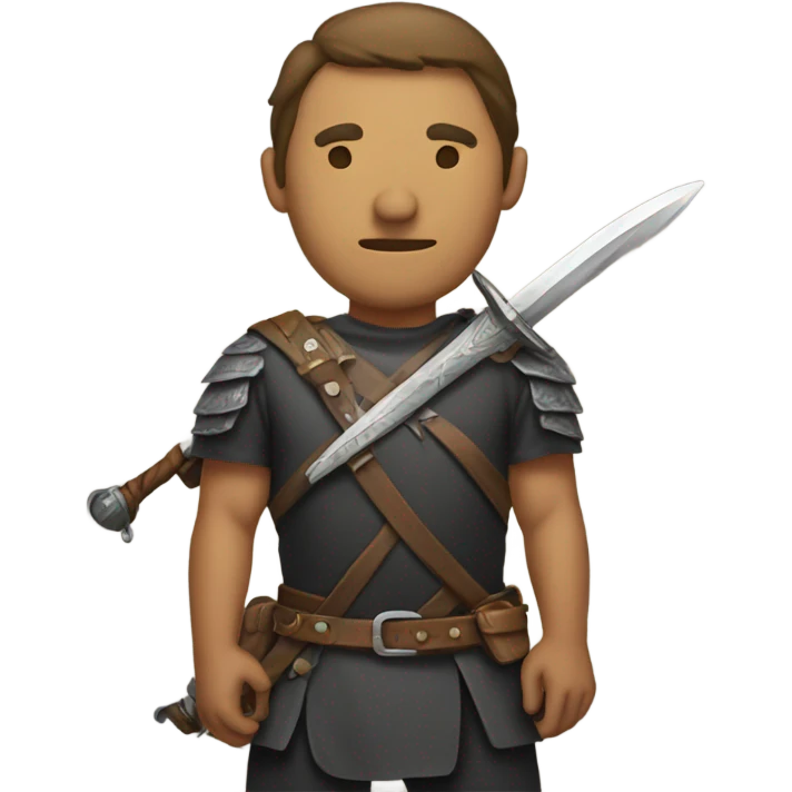 Man with gray eyes, light-brown hair, knight clothes, with sword emoji