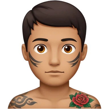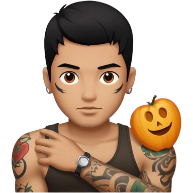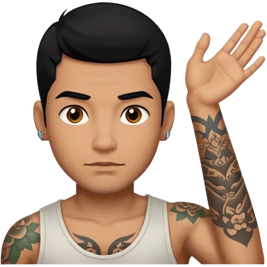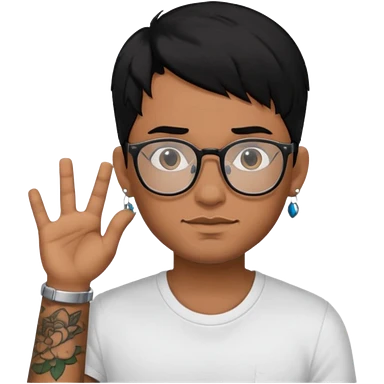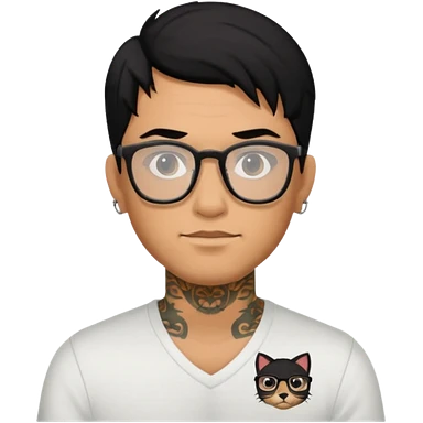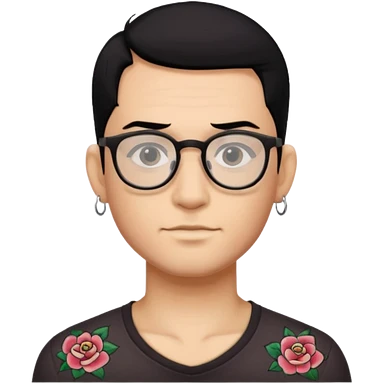 man with tattoo, black hair, wearing glasses, have 1 earring emoji | AI Emoji Generator