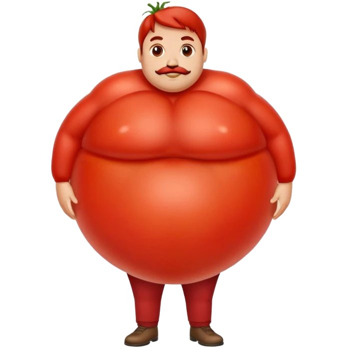 very pregnant man with a round red tomato as his pregnant belly emoji