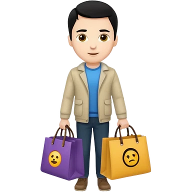 a white man with black hair carrying branded bags emoji