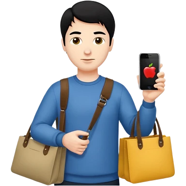 a white man with black hair carrying Apple iPhone bags emoji