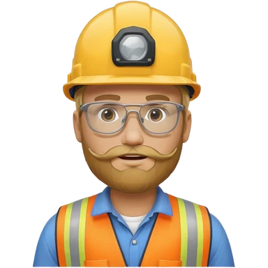 a construction man folding a machine with blue working clothes and with a blue and white logo with the name angro emoji