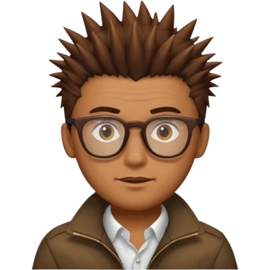 man with long dark brown hair and a black tac vest, a metal arm emoji
