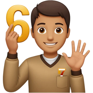man holding 6️⃣ above the lefthand and 7️⃣ above the right hand emoji