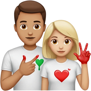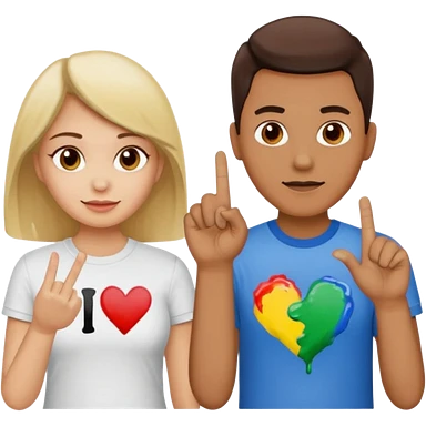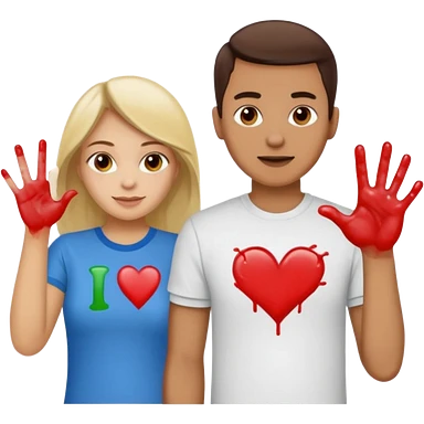 man has a shirt that says i love to finger paint and the womans shirt says am paint emoji