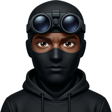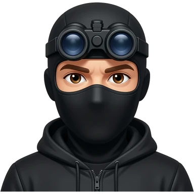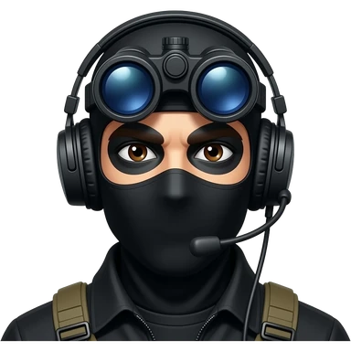 man with brown eyes wearing black clothes with a black balaclava and a black night vision device on his headtop emoji