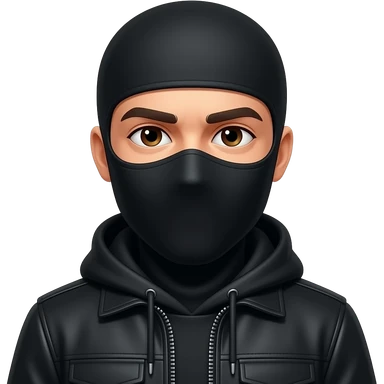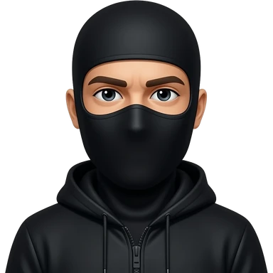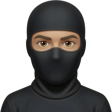 man with brown eyes wearing black clothes with a black balaclava emoji