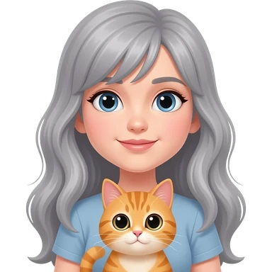 Gray long hair no bangs parted on side girl holding orange cat emoji