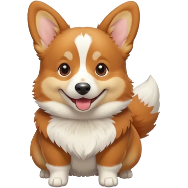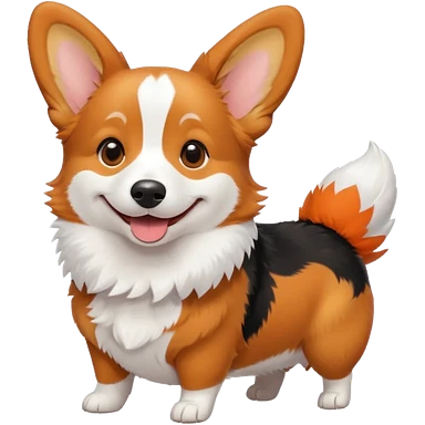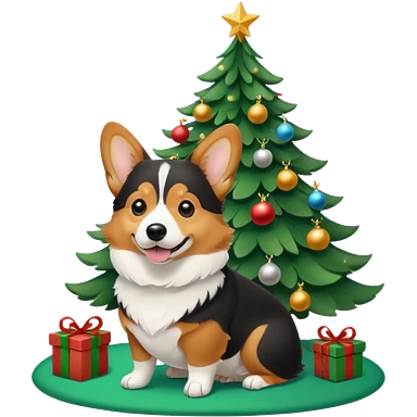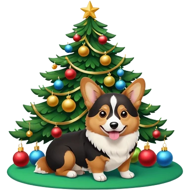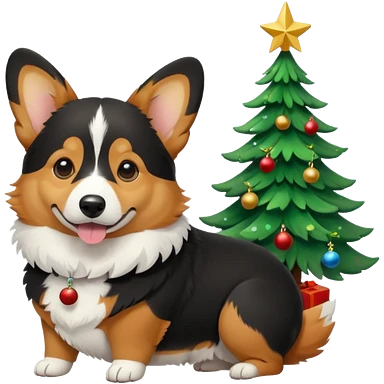 black tricolor corgi with no tail and christmas tree next to it emoji