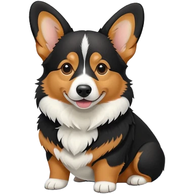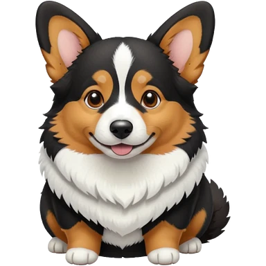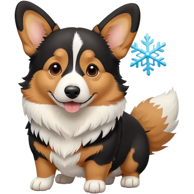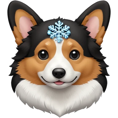 black tricolor corgi with no tail and a snowflake on it's nose emoji