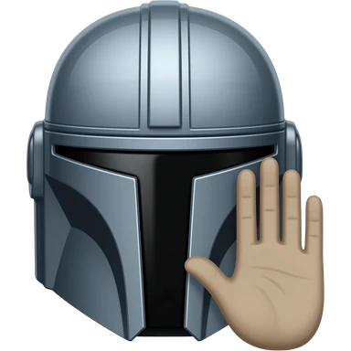 mandalorian Use classic mandalorian from last images, put a fingerless glove on the hand, PUT THE HAND OVER THE FOREHEAD - Keep everything the same but reverse the thumb position, the thumb is backwards. Place a flat palm and spread fingers against the forehead. emoji