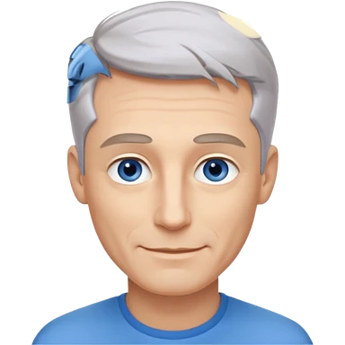 Avatar pic male gray hair blue eyes clean shaven blonde eyebrows high cheekbones sly smile emoji