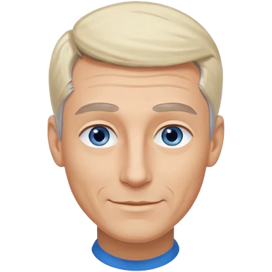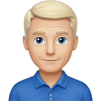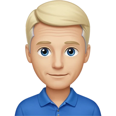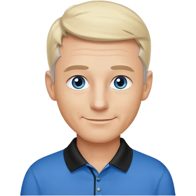 Avatar pic male gray hair blue eyes clean shaven blonde eyebrows high cheekbones sly smile long eyelashes wearing a black golf shirt emoji