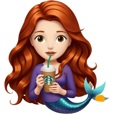 MERMAID WITH LONG HAIR AND DRINKING STARBUCKS COFFEE emoji