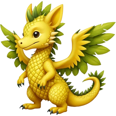 Mango-Pineapple-Kiwi-themed "Dutch Angel Dragon"-"Vernid"-"Trico"-furry-Fakémon-hybrid-creature (full body) emoji | AI Emoji Generator