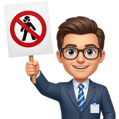 Pancarta de cartón rectángular blanca con un palo del centro de madera, de manifestación emoji