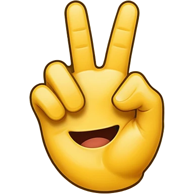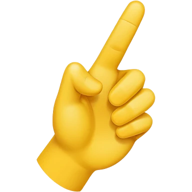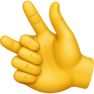 Una mano emoji amarilla al estilo de Apple iOS haciendo un gesto único: el dedo índice apuntando hacia arriba, los dedos medio y anular doblados hacia adentro, y el pulgar tocando el meñique emoji