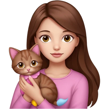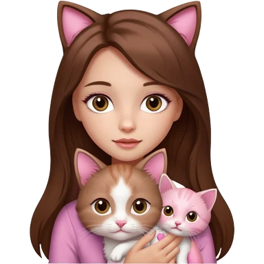 Pretty girl long hair Brown makeup pink kitten emoji