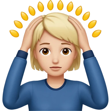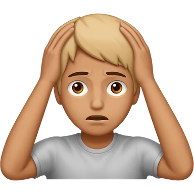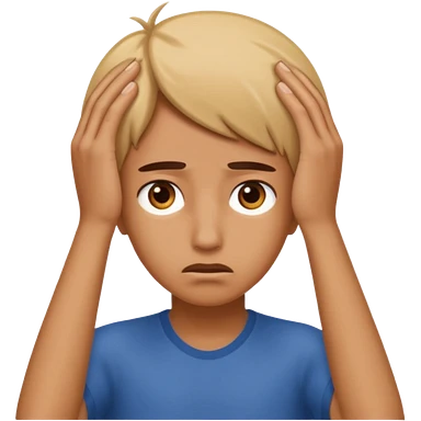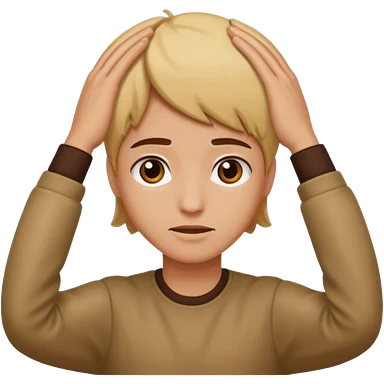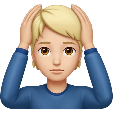 Manos en la cabeza cruzadas con un brazo estirado y la cabeza viendo hacia abajo emoji