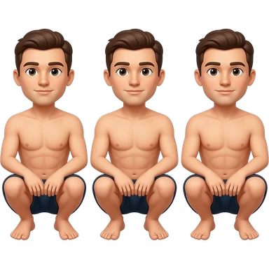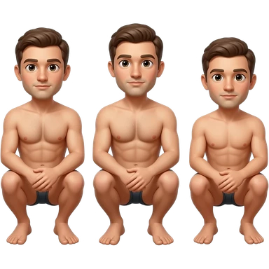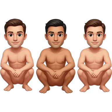 3 Mans complete Squatting naked full body emoji