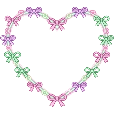many glowing pastel pink and green lines with tiny outlined bows, circles and hearts around it with the same colour emoji