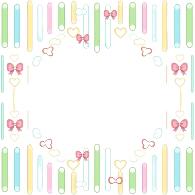 many light blue , pink, green and yellow colored glowly straight, vertical, and horizontal lines, small outlined hearts, bows and circles of the same colour scattered messily and without a pattern far from each other like a picture border emoji