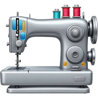 Mujer con cabello a la altura de hombros, cabello color chocolate claro, con máquina de coser emoji