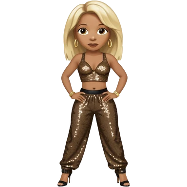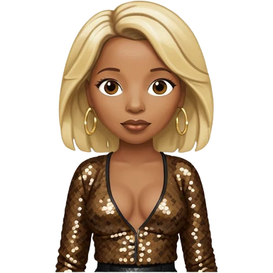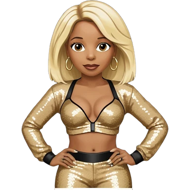 Mary J Blige with long blonde hair, dark brown sequin bra, dark brown sequin baggy pants emoji