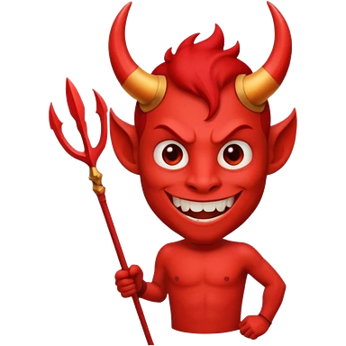 a Red devil, Small red imp holding pitchfork, tail curled emoji