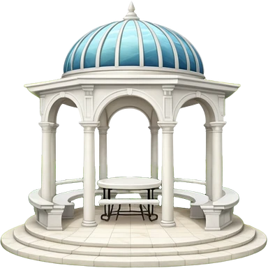 White luxurious expensive shiny new brilliant gorgeous marble pavilion with benches and a garden emoji