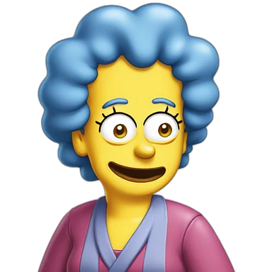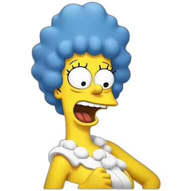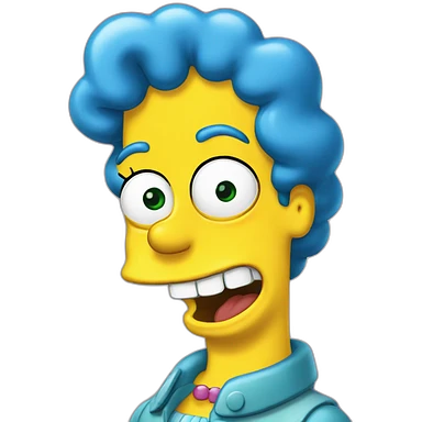 Marge Simpson, yellow skin, tall blue beehive hair, red pearl necklace emoji