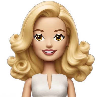 Margot Robbie playing with barbie Doll emoji | AI Emoji Generator