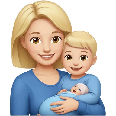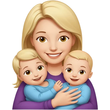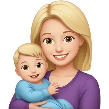 a mother with blond curly long wearing purple hugging his son with brown hair wearing blue and like saying its okay emoji