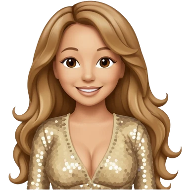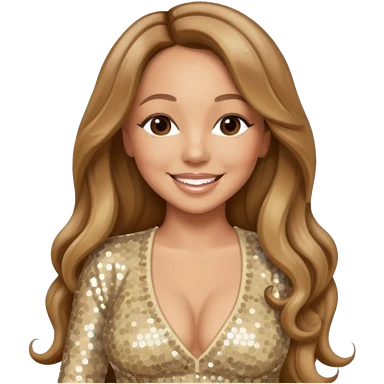 Mariah Carey with long light brown hair, cream sequin outfit emoji