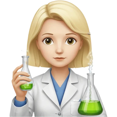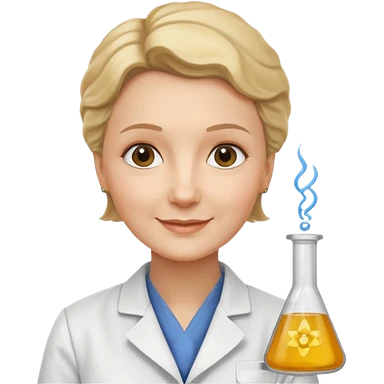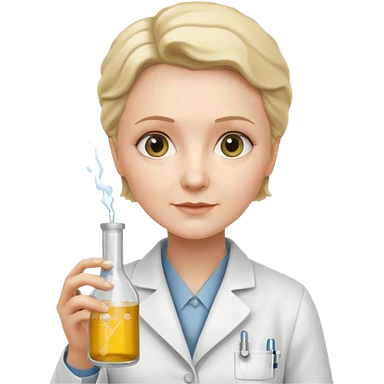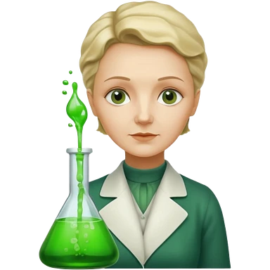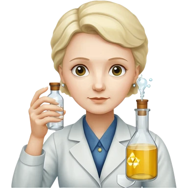 Marie Curie hold experimental bottle emoji | AI Emoji Generator