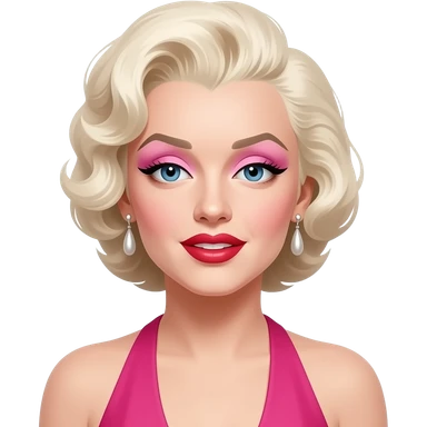 Marilyn Monroe with blue eyes, platinum blonde hair, pink outfit emoji