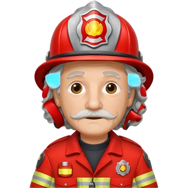 Firefighter old man curly long hair with red uniform emoji
