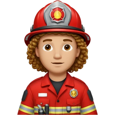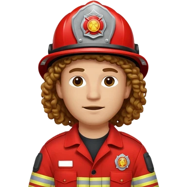 Firefighter man curly long hair with red uniform emoji