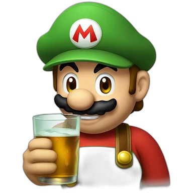 Mario plumber drinking alcohol with a hat that says “HOPE” emoji