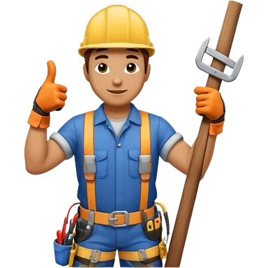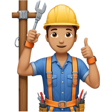 Un electricista en el poste de luz con todos sus implementos de seguridad haciendo like emoji