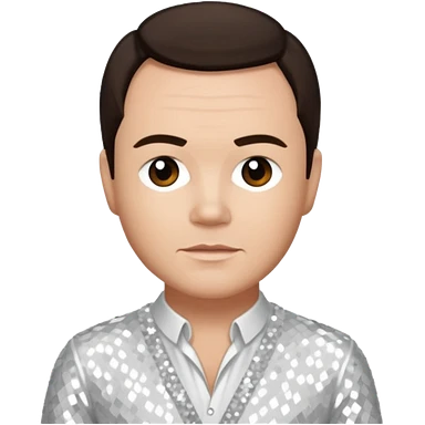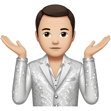 Tony Mortimer from East 17 with light skin, dark brown hair, white sequin outfit emoji
