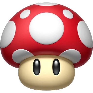 Mario Mushroom with glossy red cap and white spots, rounded shape, simple and cute, no text emoji