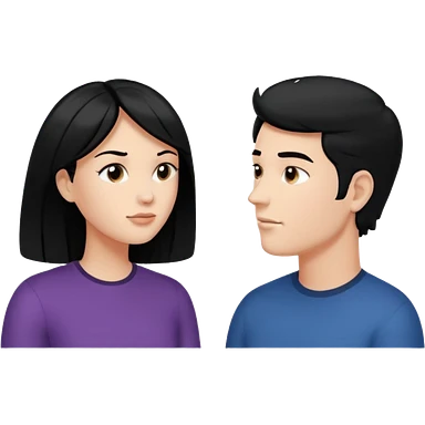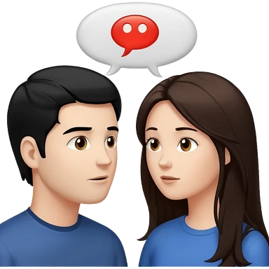 a person chatting up another person, one white male with black hair, one white woman facing each other talking with strictly white speech bubbles above their head, emoji