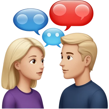 a person chatting up another person, one white male, one white woman facing each other talking emoji